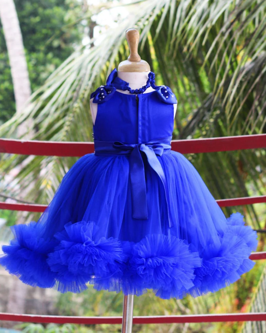 Royalblue Ruffled Pleated Bow Frock