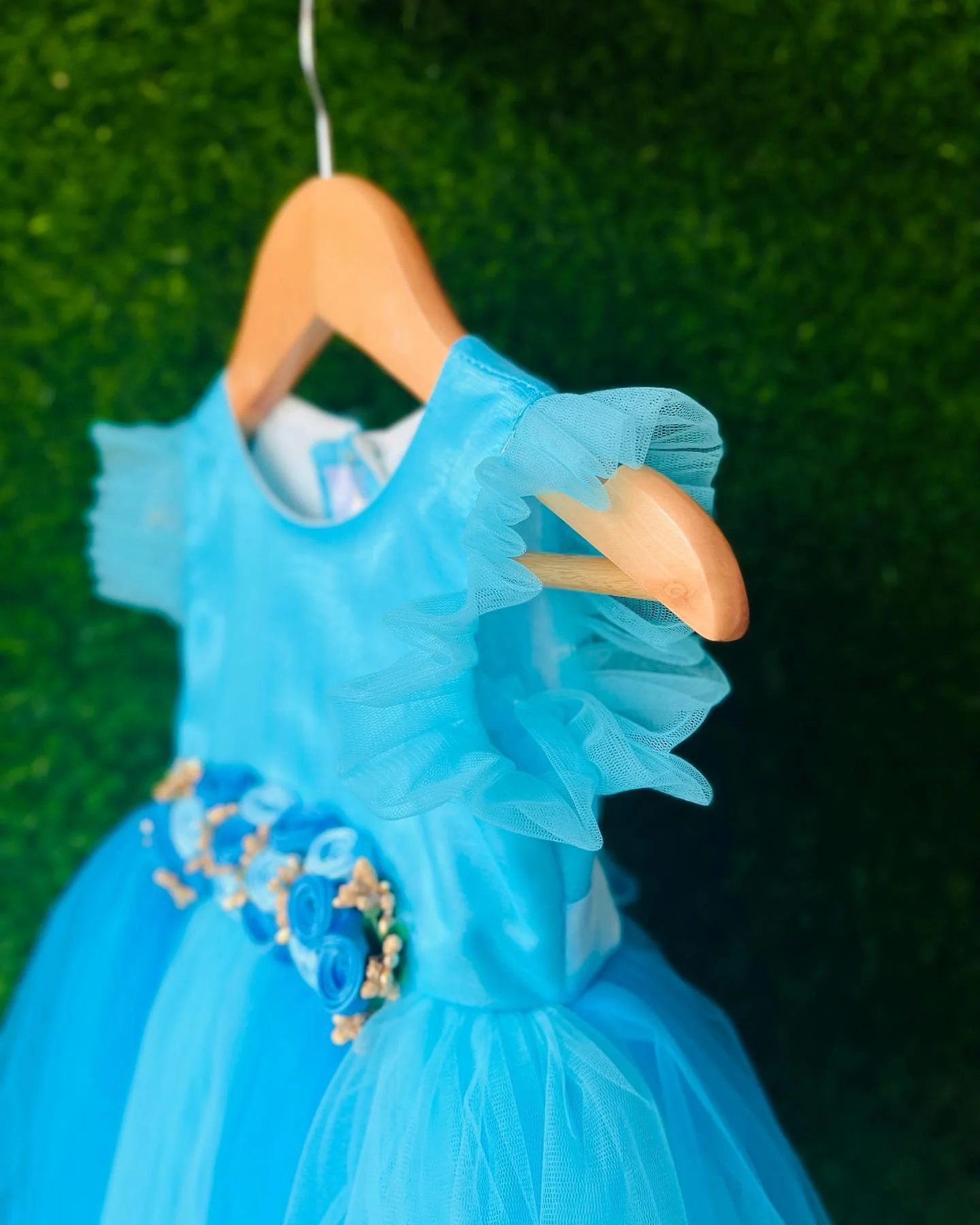 -70%Sky Blue & Darkblue Layered Flower Frock—